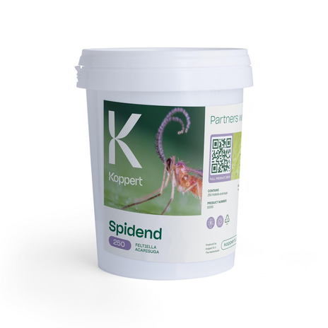 The dosage of Spidend depends on climate, crop and spider mite density and should always be adjusted to the particular situation. Start introduction as soon as the first spider mites are detected in the crop. Introduction rates typically range from 0.25-25 per m2/release. Releases should be repeated at least 3 times at weekly intervals, or until the pest is controlled. Consult a Koppert advisor or a recognized distributor of Koppert products for advice on the best strategy for your situation.